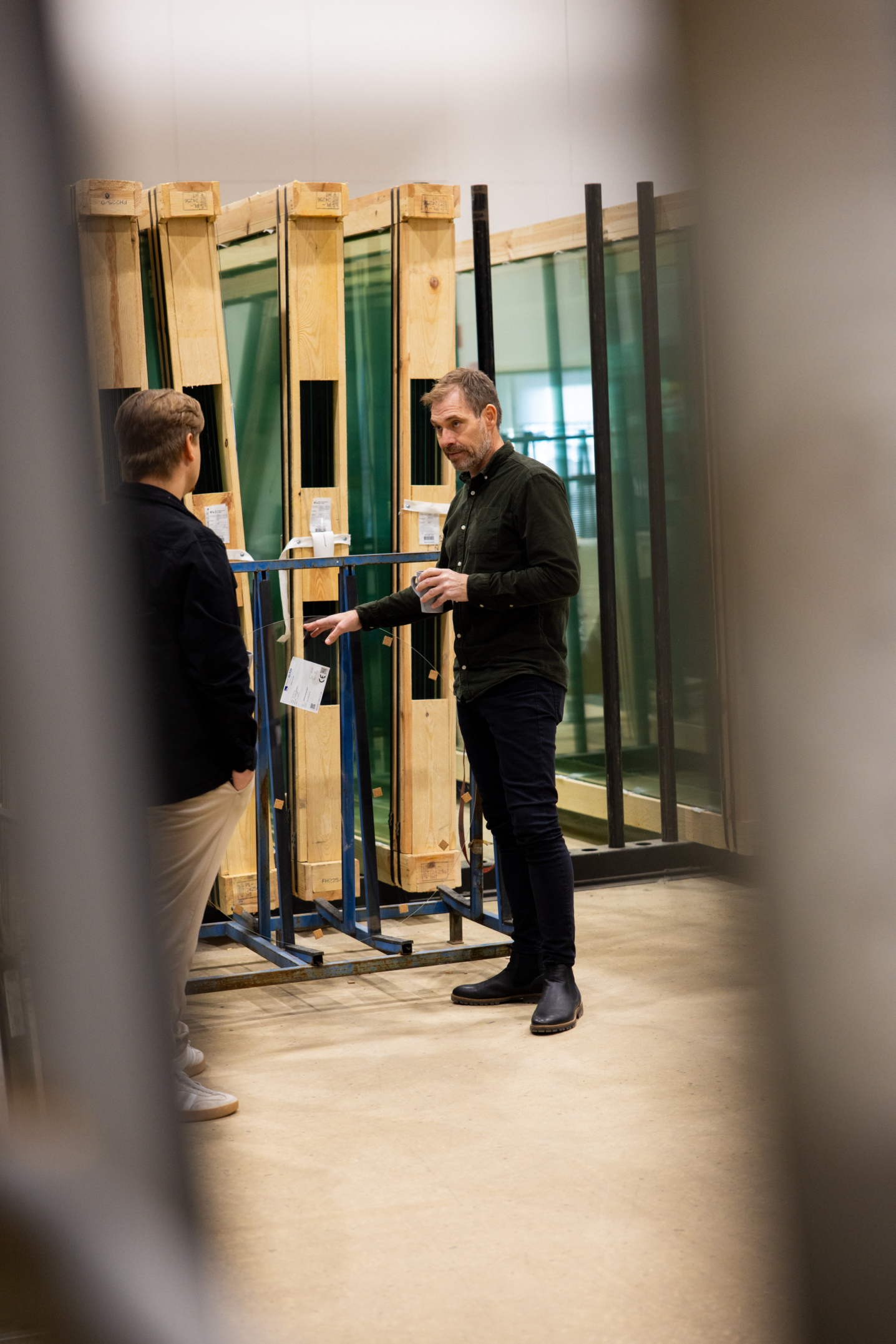 – När en slutkund beställer något hos ett glasmästeri är det ofta vi som ser till att rätt material finns på plats. Vi lagerhåller stora glaspartier som vi skär till eller anpassar här. Även specialprodukter som isolerrutor och härdat glas beställer vi hem vid behov, säger Magnus Wikström.